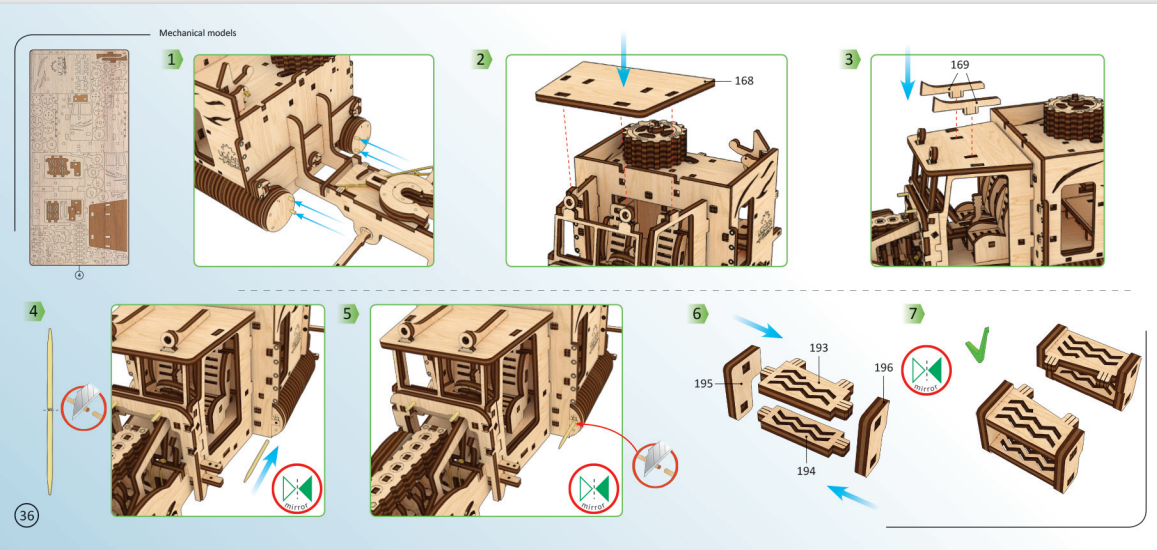 Jokaisessa mallissa tulee värilliset, selkeät kuvalliset ohjeet jotka sisältää vain vähän sanoja. Ohjeiden avulla haasteesta selviää niin nuoret kuin vanhemmatkin. Olemme myös kääntäneet Ugears mallien ohjeet suomeksi PDF muotoon, jotka voit pyytää meiltä tilauksen yhteydessä.