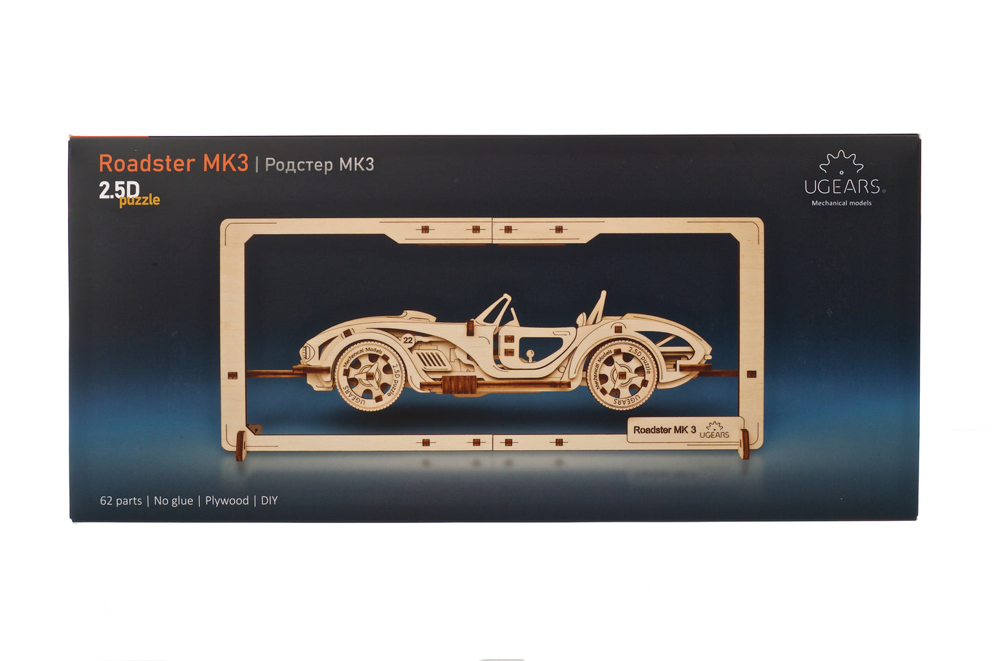 Meet the Roadster MK3 from the 2.5D Classic Vehicles collection—the first series in our new line of Ugears 2.5D puzzles! This beautiful DIY 2.5D wooden picture model has movable elements and comes in its own frame, suitable for hanging on a wall or standing on a desk or shelf.